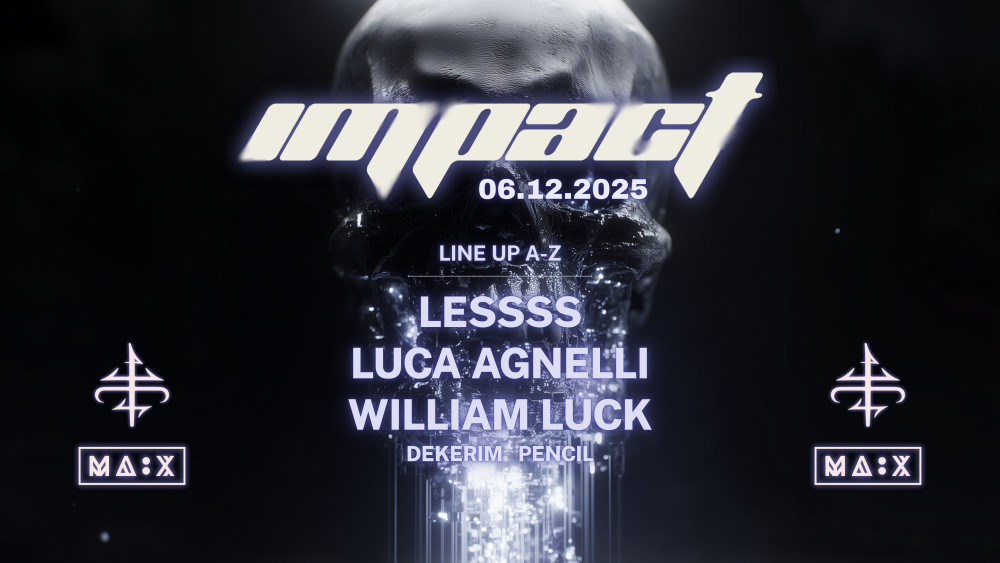 On December 6th, the walls of MÄX will shake once again as IMPACT RAVE returns with three titans of the techno scene! Immerse yourself in hard-hitting techno and industrial power, surrounded by a crowd united by their love for the sound - and for each other. Expect a relentless night of high BPMs, strobes and sweat, as three of the most explosive international artists take control of the decks.