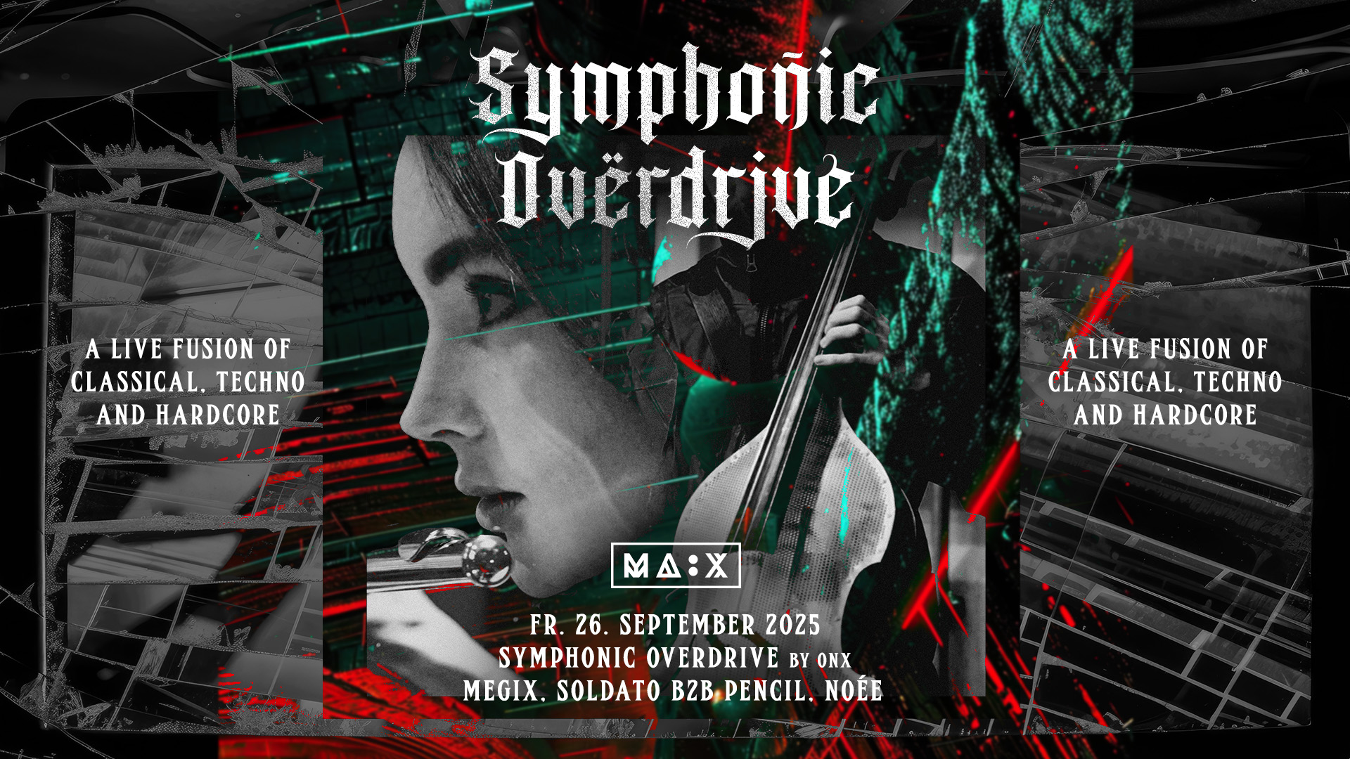 A live fusion of classical, techno, and hardcore. Symphonic Overdrive is a cultural project featuring live instruments, dance performances, and DJ sets - created by ONX together with the artists of Symphonic Overdrive.