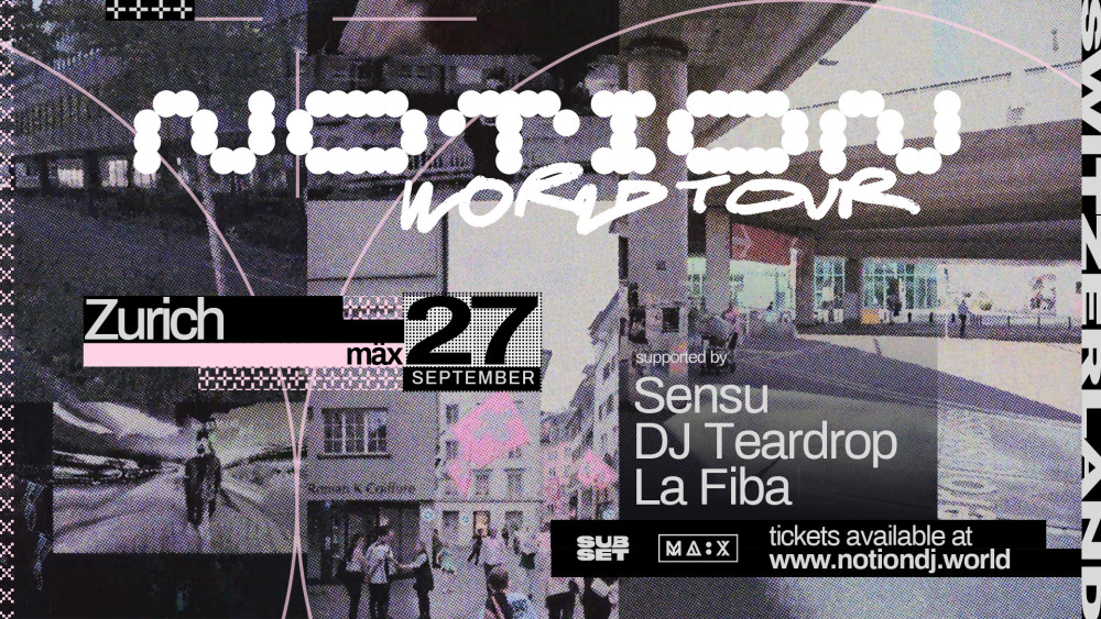 UK dance music powerhouse NOTION will visit Zurich on September 27th on his headline World Tour! NOTION has emerged as a leading figure in the UK's electronic music scene, known for his dynamic fusion of UK Garage, Bassline, House and Jungle. With his emotional, high-energy tracks like his viral remix of Chrystal's 'The Days', he's spearheading the new wave of UK club music.